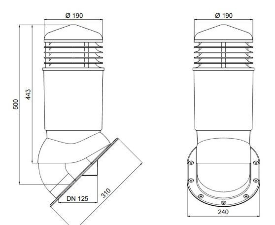 • Вентиляционный выход WIRPLAST NORMAL PLUS d125/110 h500 изолированный с проходным элементом для мягкой и фальцевой кровли черный