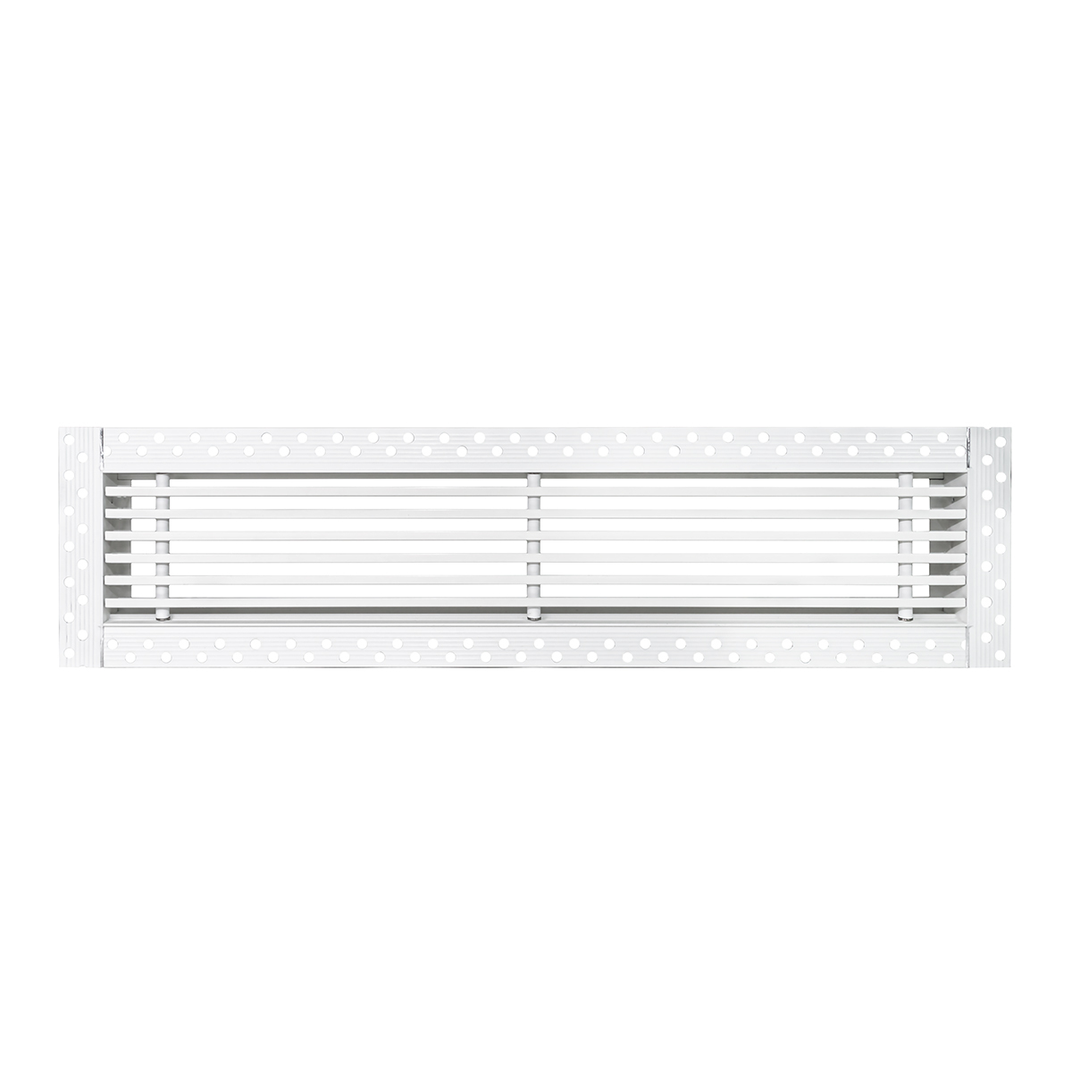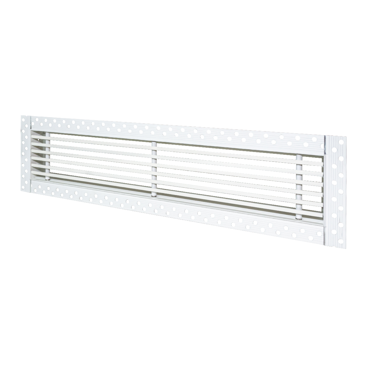Данная решетка подходит для монтажа на любую поверхность под финишную отделку. Рамка и экран изготовлены из алюминия, опора экрана - из оцинкованной стали. Рама оснащена «полкой» 1,9 мм и рифлеными краями для большей адгезии финишного материала – шпатлевки, цемента. Решетка имеет съемную центральную часть с фиксированным углом наклона ламелей 15°. Она крепится к корпусу прочными металлическими тросиками, легко снимается для очистки и удобного обслуживания.
