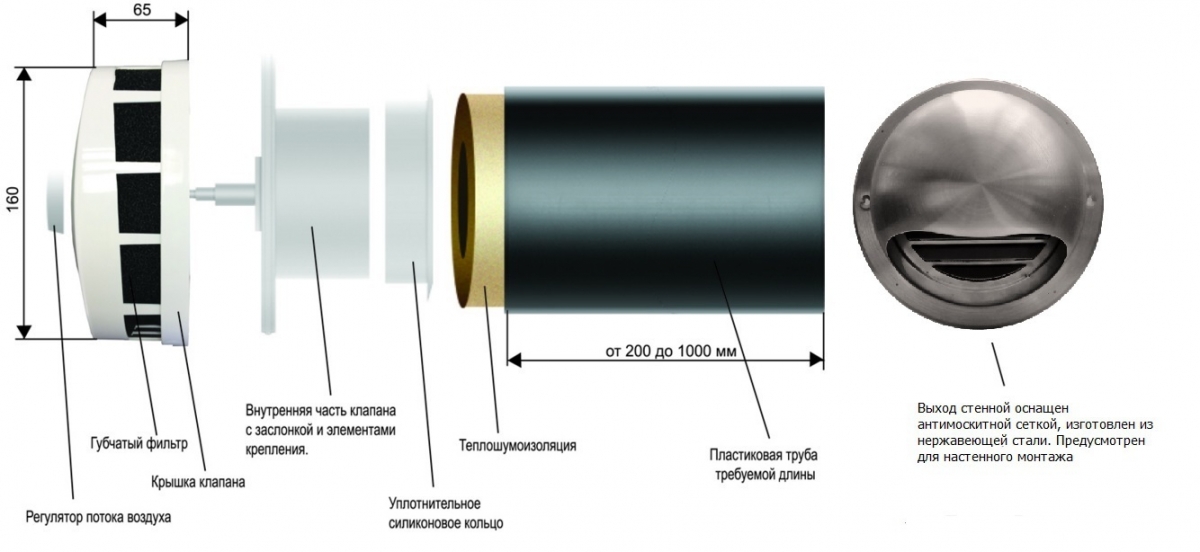 Внимание: длина утеплителя в трубе клапана составляет 20-25 см..