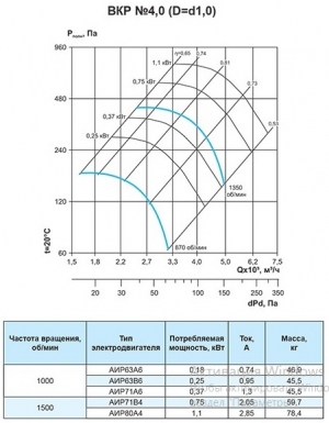 - Относительные диаметры рабочих колес (коэффициенты): 1,0