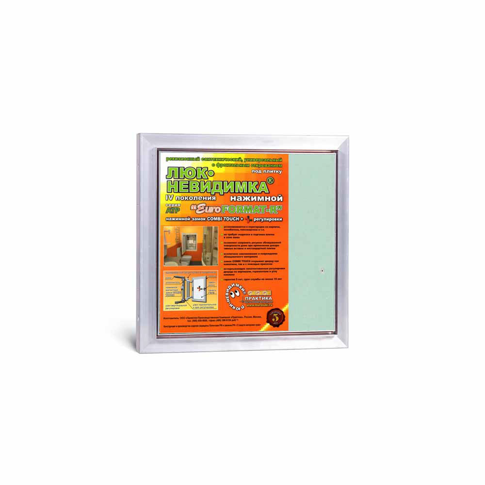 Дверца люка «Евроформат АТР» изготовлена из высококачественного листа ГВЛВ «Кнауф», это позволяет использовать люк в помещениях с повышенной влажностью.
