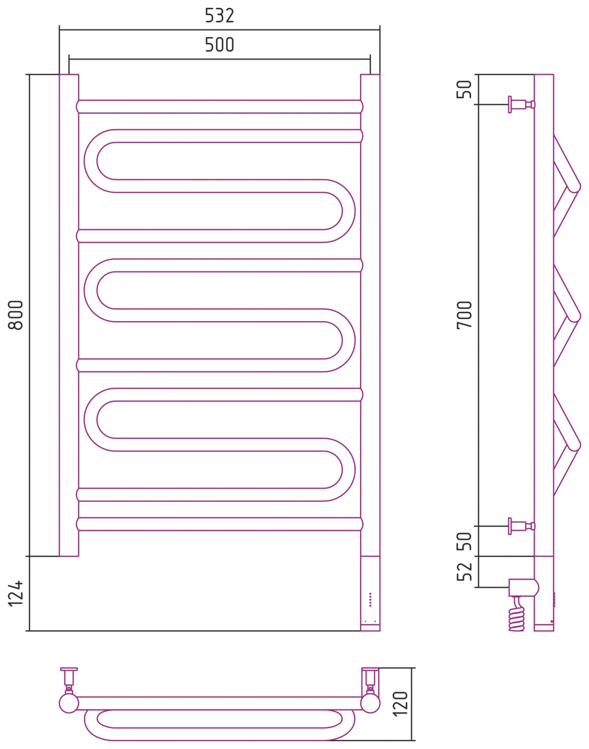 Полотенцесушитель электрический Сунержа Элегия 3.0 800x500