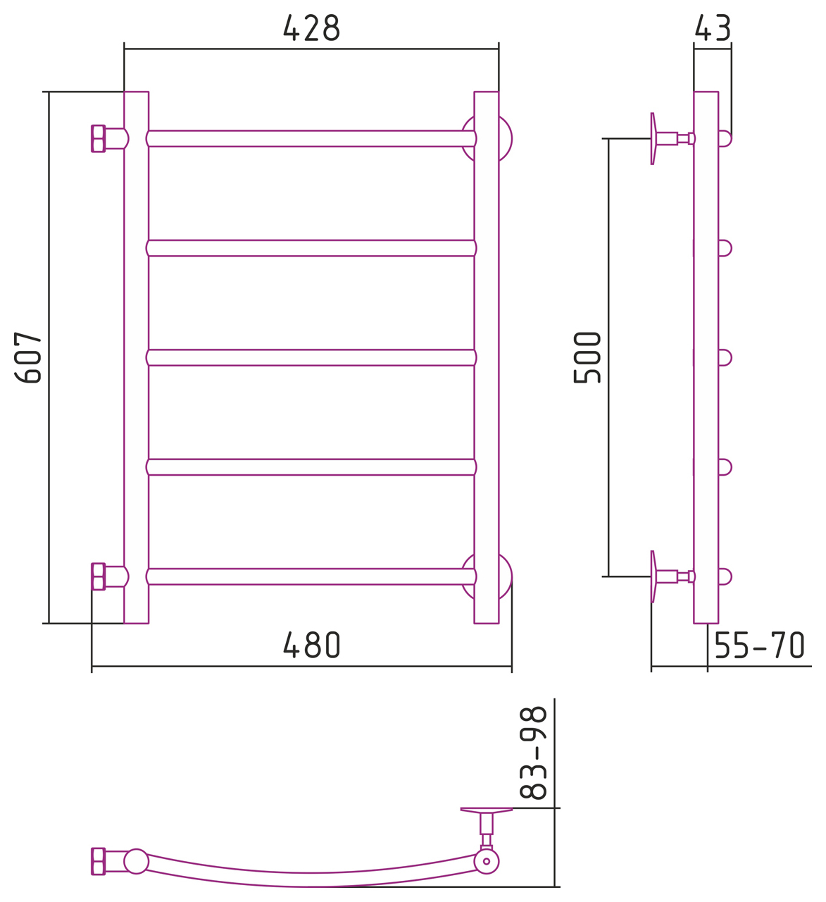 Полотенцесушитель водяной Стилье Версия-Б2 500x400