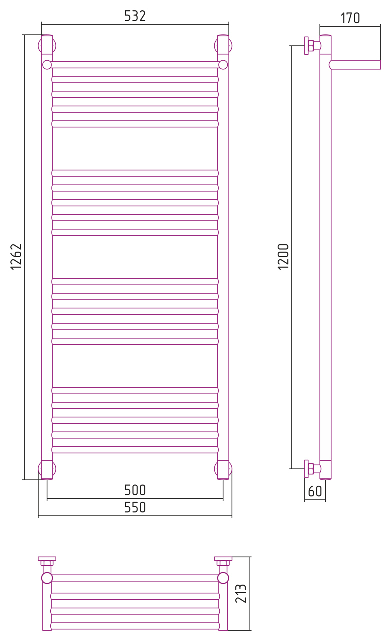 Внешние габариты (высота х ширина х глубина) (мм) : 1262x550x213