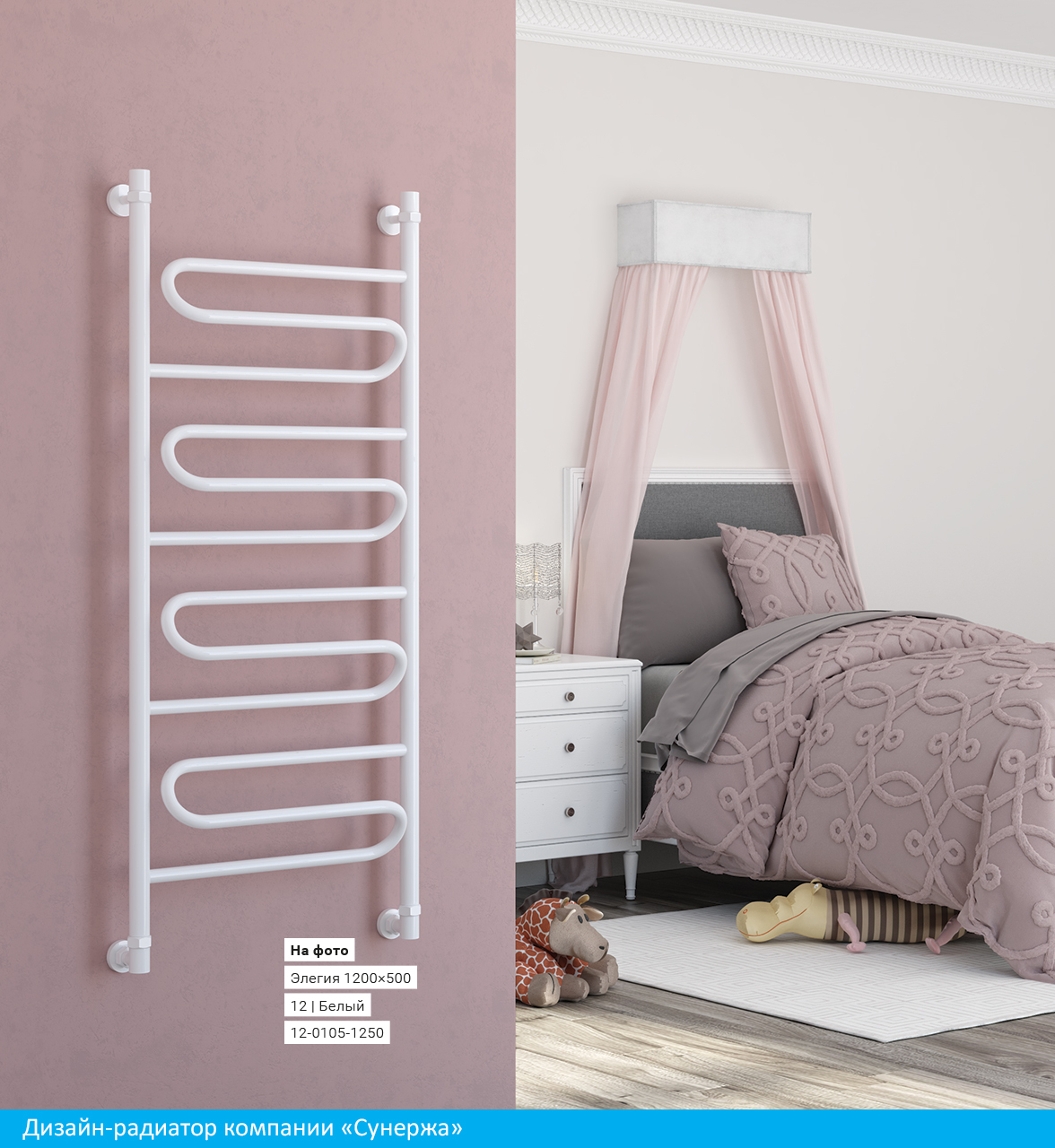 Необычный внешний водяного полотенцесушителя Сунержа, модельного ряда Элегия, с габаритами 600 мм в высоту и 600 мм в ширину, отлично впишется в интерьер вашей квартиры, и в особенности, вашей ванной комнаты.