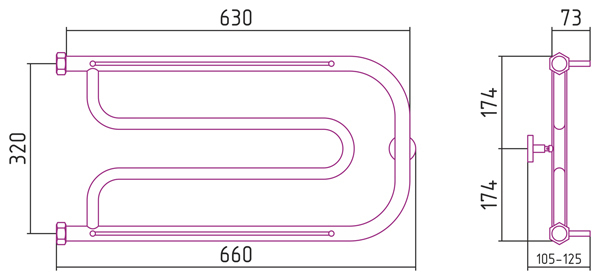 Водяной полотенцесушитель Сунержа, модельного ряда Гусли, с внешними габаритами – 320 мм в высоту, и 650 мм в ширину, позволят вам установить продукт, абсолютно в любой точке, вашей ванной комнаты, а так же, размещать достаточно большое количество вещей, которым необходимо просушивание.