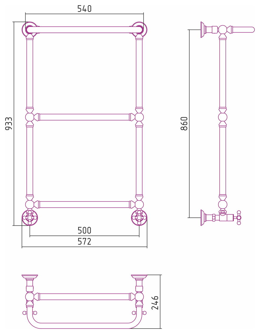 Внешние габариты c переходными угловыми элементами (мм) : 933х572x276