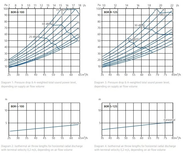 • Максимально допустимый перепад температур составляет ΔT10°С. BOR-S оснащен устройством для регулирования расхода воздуха и измерения перепада давления.