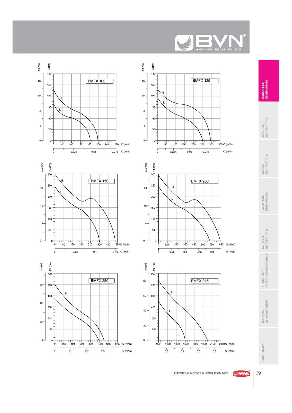 • Вентилятор изготовлен из пластика (модели BFMX 100 – BFMX 200), а у моделей BFMX 250 и BFMX 315 стальной корпус покрытый электростатической порошковой краской.