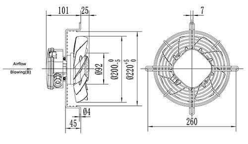 Вентилятор Ванвент YWF2E-200B-92/15-G нагнетающий (приток) на сетке (730 m/h)