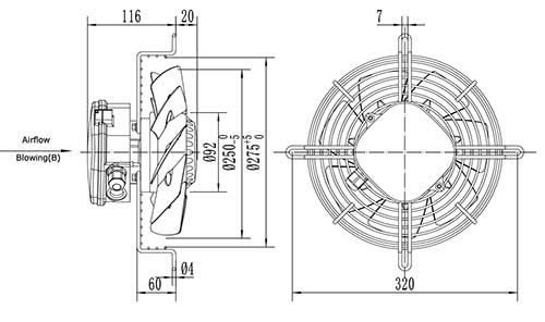 Вентилятор Ванвент YWF4E-350B-102/34-G нагнетающий (приток) на сетке (2300 m/h)