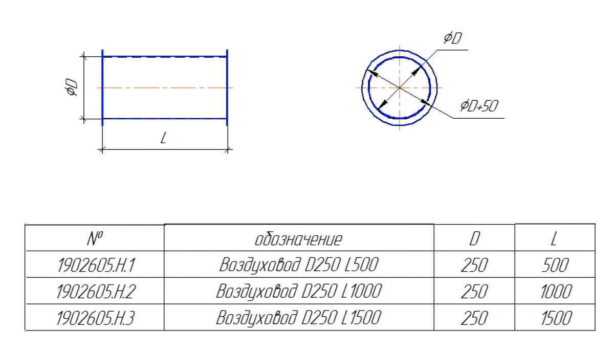 Воздуховод круглый 250 мм 1,0 м полипропилен